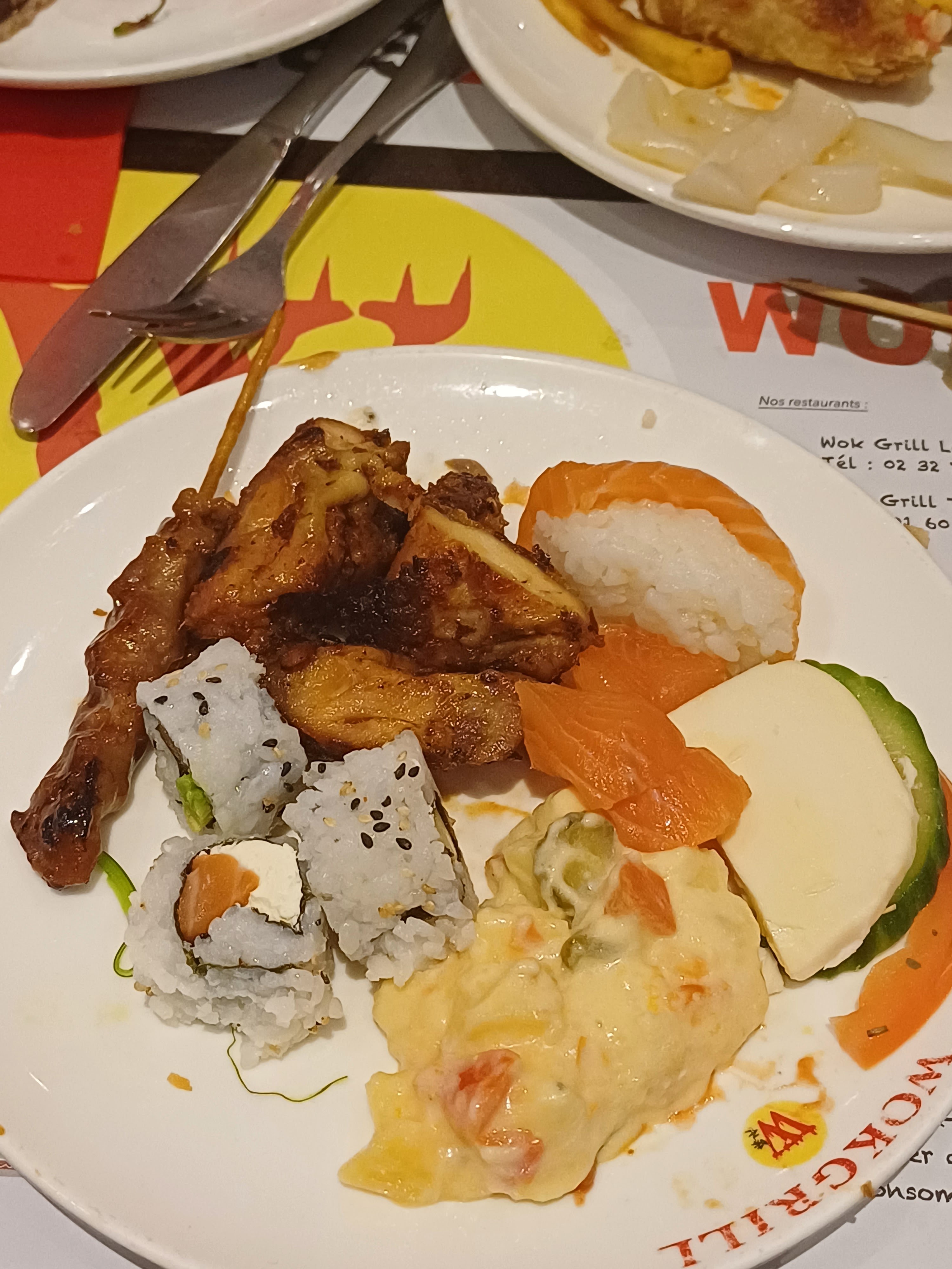 Franchement je suis super déçu de ce wok. Je ne vous conseille pas du tout d’y aller. Je trouve qu’il n’y a pas assez de choix. Les sushi ne sont pas du tout bonnes le riz est pâteux et collant elles sont vraiment pas bonnes j’étais obligé de recracher. Niveau plat je trouvais que c’était assez fade, les nouilles n’avaient aucun goût… heureusement qu’il y avait les desserts parce que sinon j’allais rester sur ma faim.
