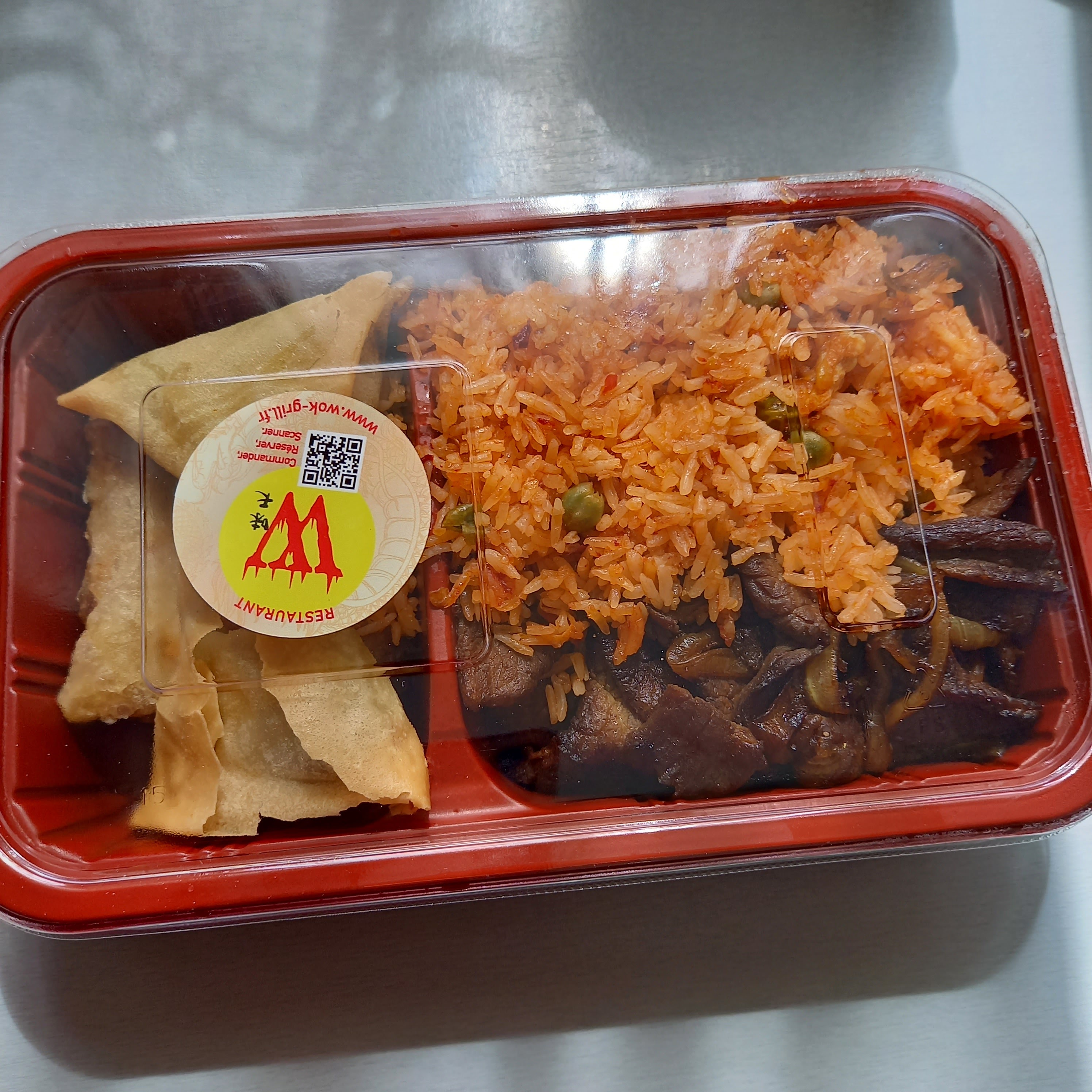 Viande périmé avec une odeur bizarre (on a vu le cuistot mettre cette viande de côté et la remplacer sur le même endroit) très peu de choix et au final on a du se caler avec de l’eau !! Le pire wok que j’ai jamais goûté 16,90 jeté en l’air