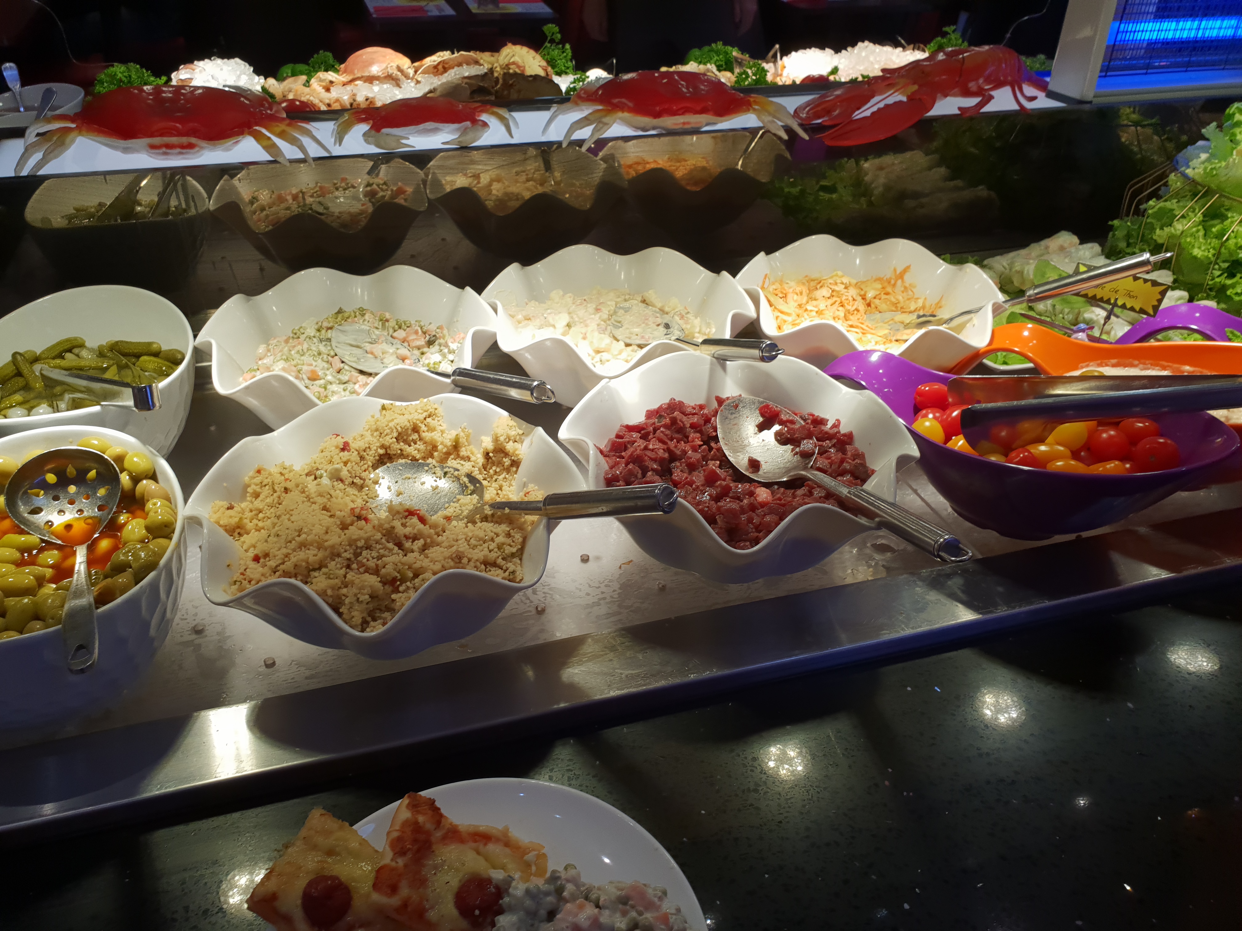 Franchement ce restaurant se démarque de tous les autres du même style. Fraîcheur et qualité des produits VARIÉTÉS et CHOIX à gogo. Le plus : Les fruits de mer à volonté, c'est vraiment exquis. Le moins: dommage que les sauces accompagnant Les hors d'œuvres et fruits de mer ne soient pas plus raffinées. (sauces basiques pour rester polie). A part ça c'est vraiment le top. Le service est de qualité. Vraiment je recommande. RAPPORT QUALITÉ PRIX DÉFIANT TOUTE CONCURRENCE.